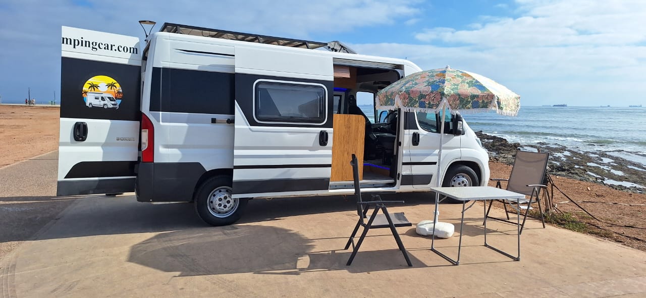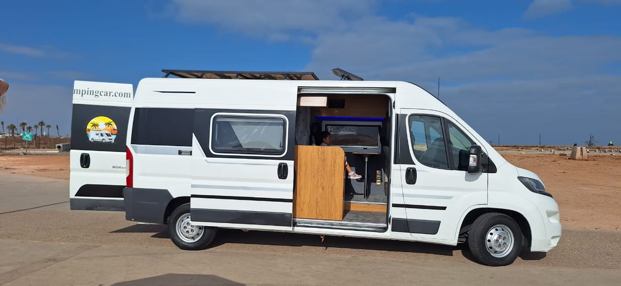 Descubre Atlas, nuestra espaciosa y cómoda autocaravana, perfecta para explorar Marruecos con total libertad. Con 4 plazas y camas, aire acondicionado y un equipamiento completo, es ideal para parejas, familias o amigos que buscan aventuras. ¿Su gran ventaja? Entrega gratuita al aeropuerto de Casablanca (otras ciudades disponibles con coste adicional). A tu llegada, Atlas te espera: sin rodeos, sin estrés, tu viaje comienza de inmediato. Disfruta de total autonomía gracias a: Una cocina totalmente equipada (nevera, cocina, fregadero), un baño con ducha e inodoro, una cómoda zona de dormir para 4 personas, un amplio espacio de almacenamiento para tu equipaje. Explora las montañas del Atlas, las playas del Atlántico o el desierto del Sáhara con facilidad. Atlas es tu compañera de viaje ideal para vivir Marruecos de una manera diferente. Incluye: Entrega y devolución al aeropuerto de Casablanca, seguro y asistencia, kilometraje ilimitado (opcional), equipo de camping (mesa, sillas, etc.).